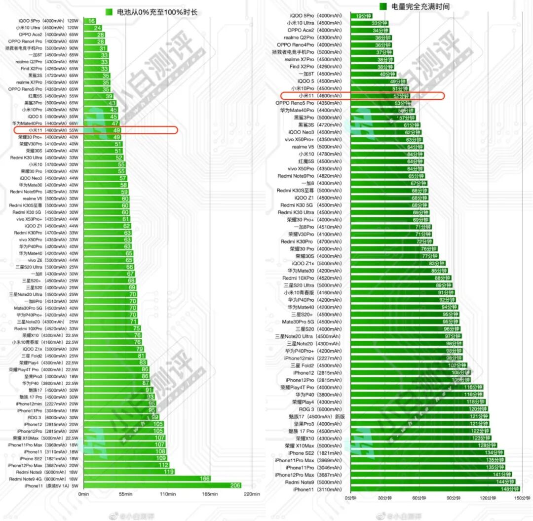 最后是刚发布的小米11,参数配置汇总、测评视频均已更新,今天集中看一下小白测评刚刚出炉的小米11所有实测数据,涵盖性能、充电、续航、20轮应用打开、游戏发热帧率等。