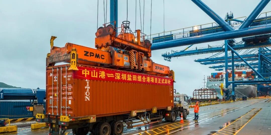 近日,伴随“畅远003”号驳舶缓慢驶入泊位,“中山港-深圳盐田港”大湾区组合港航线正式开通,首批货柜将从盐田港直接搭上国际货轮出口到法国。