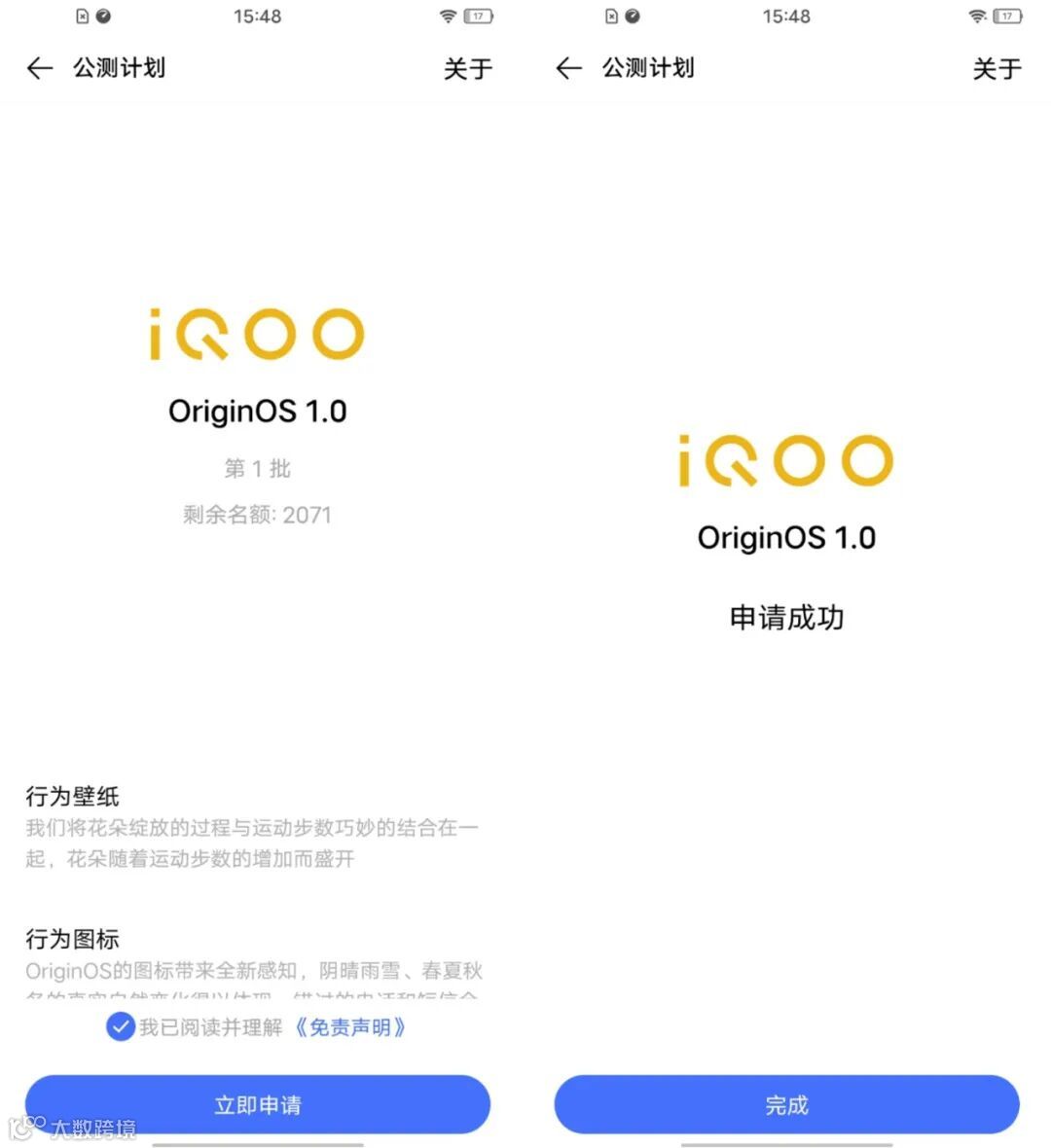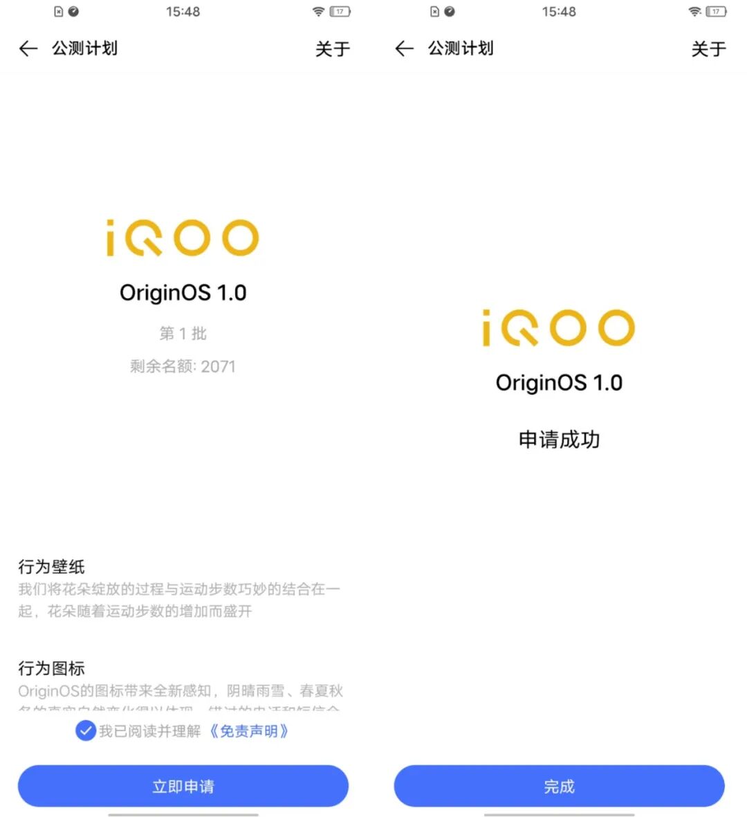 下午用vivo S7升级时显示名额还有很多。