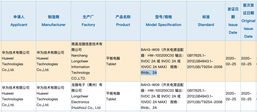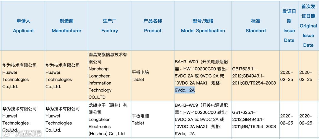如上图所示,就在昨日,华为型号为BAH3-W09的一款平板电脑新品现身3C认证,配备18W充电器,由于其不支持5G,所以按照华为的产品线更新推进应该是华为平板M6青春版 系列。
