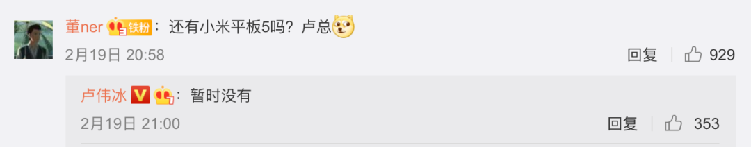 对了,小米这边平板也很久没更了,前几天卢伟冰曾透露“暂时没有小米平板5 ”,蹲小米平板的小伙伴也可以短暂地死心了~