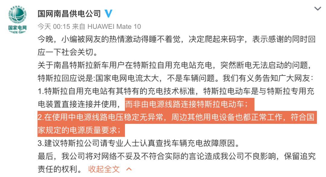 半夜国家电网相关账号也紧急出来辟谣,表示出现相关故障和国家电网并没关系。出事车辆在使用中电源线路电压稳定无异常,周边其他用电设备也都正常工作,符合国家规定的电源质量要求;并建议特斯拉公司请专业人士查找充电故障原因。