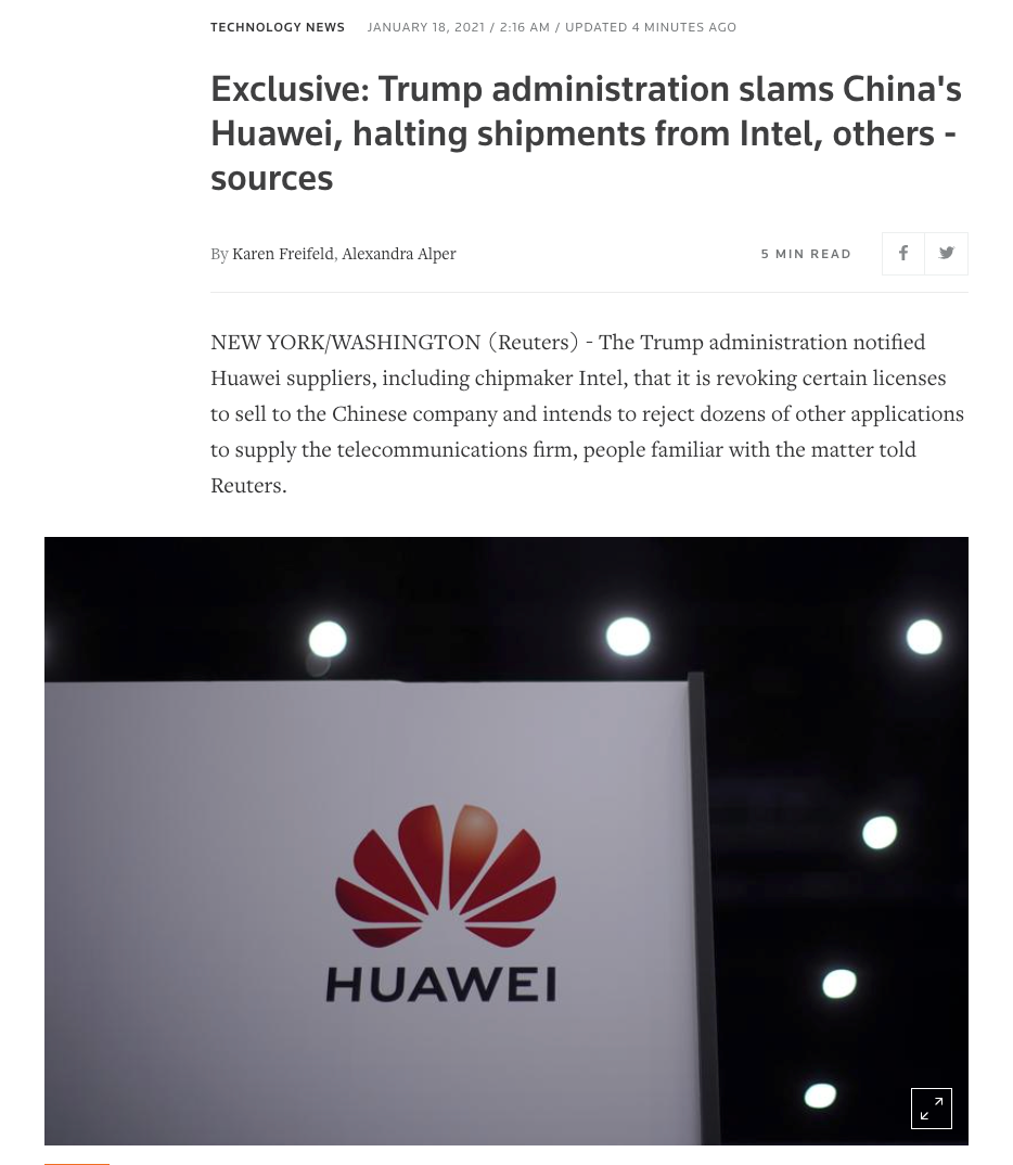 导读:特朗普政府将撤销英特尔向华为供货许可