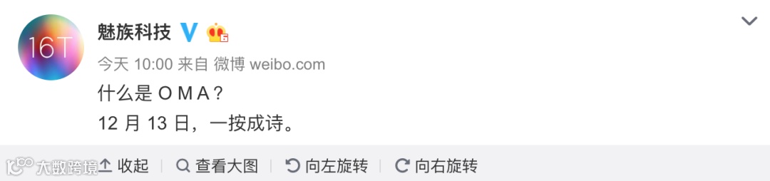 魅族今天上午十点预热神秘新品,将于12月13日揭晓,「一按成诗」疑代号「OMA」,手机类的新品应该没什么可能。