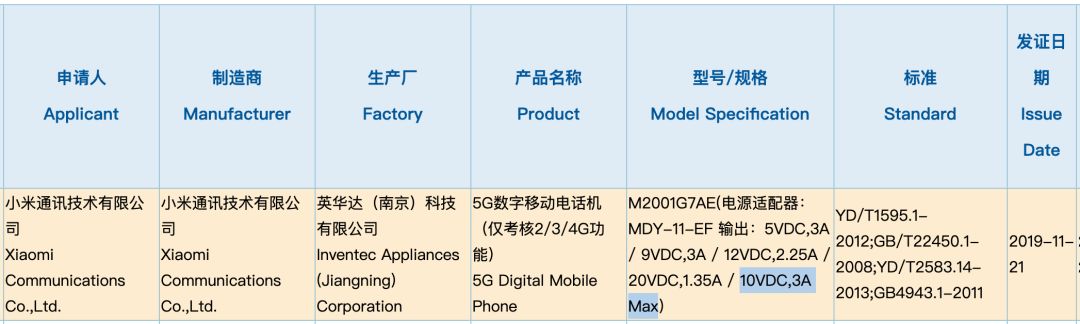另据日前3C认证显示,型号为 M2001G7AE 的 5G 新机对应 Redmi K30 标配持10V/3A 最高30W电荷泵快充,其也是小米CC9 Pro同款充电器。现在就等下个月正式发布了。