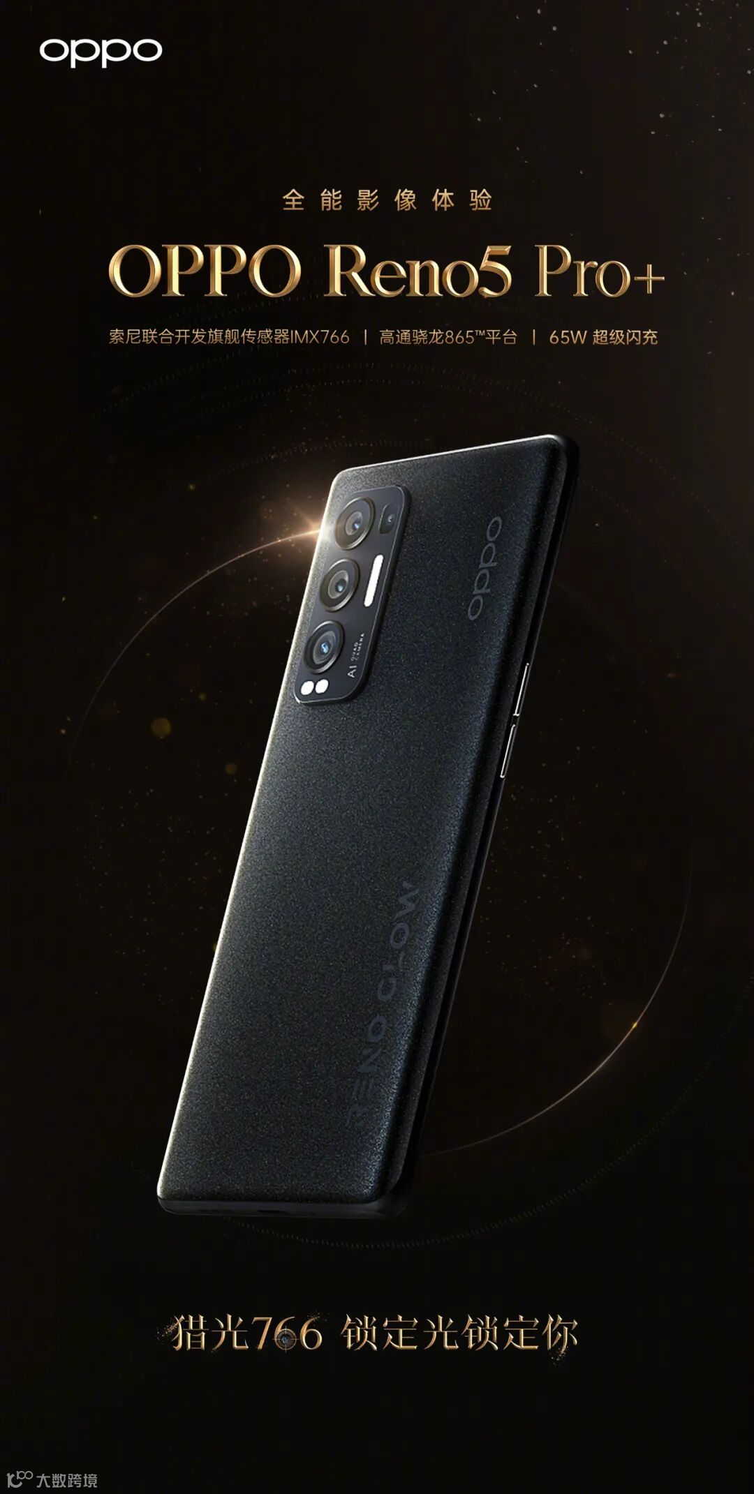 OPPO Reno5系列日前正式发布,带来了OPPO Reno5(骁龙765G)、OPPO Reno5 Pro(天玑1000Plus)、OPPO Reno5 Pro+超大杯(骁龙865)三款新机,但超大杯Reno 5 Pro+官方只公布了外观、处理器骁龙865、65W闪充,售价及详细参数未披露,今天超大杯终于开启了正式预热。
