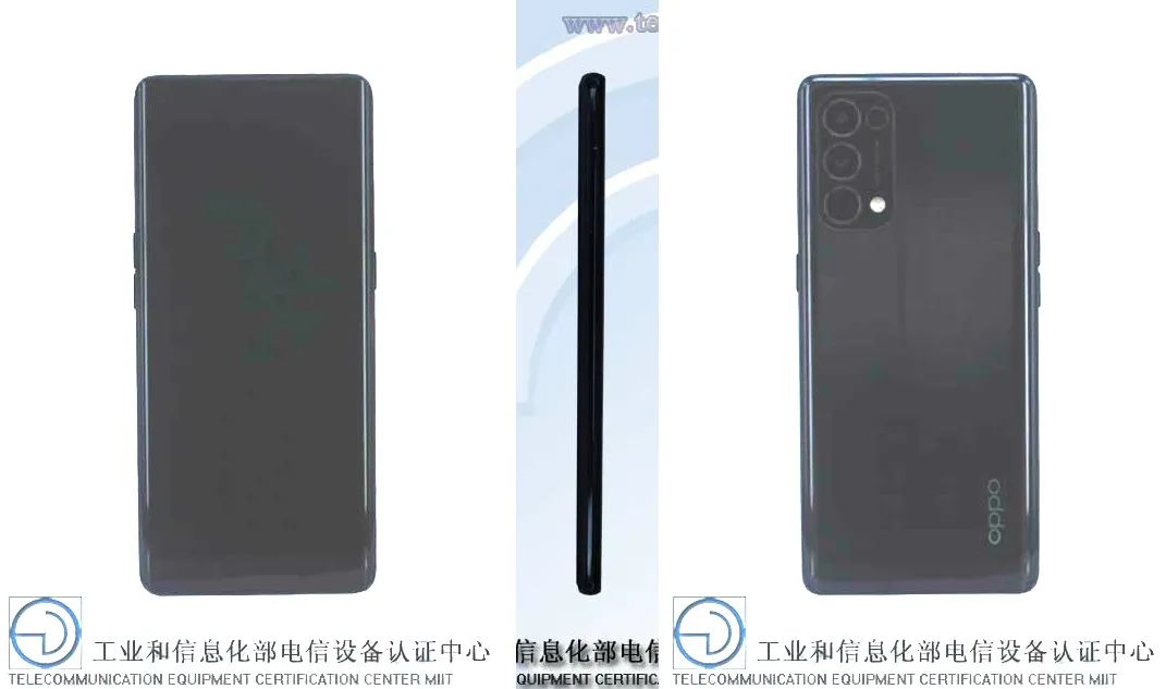 至于OPPO Reno5 Pro,工信部显示其型号为 PDSM00,采用6.55英寸2400×1080分辨率的左上角单挖孔曲面屏,AMOLED材质,曝90Hz屏幕刷新率,屏幕指纹,机身三围159.7*73.2*7.6mm,仅重173g,镜头无明显凸起,提供黑、银、蓝3个配色。