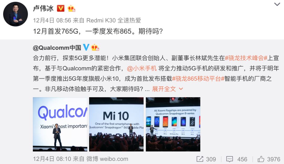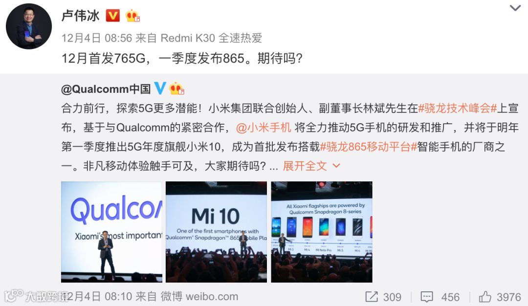 不出意外的话,Redmi 9系列应该会和Redmi K30 Pro一起发布。此前发布的Redmi K30系列只提供了骁龙730G 4G版和骁龙765G 5G版,并未推出旗舰版,照卢伟冰微博暗示,Redmi K30 Pro将搭载高通骁龙865,于2020年第一季度发布,感兴趣的可以蹲一波。