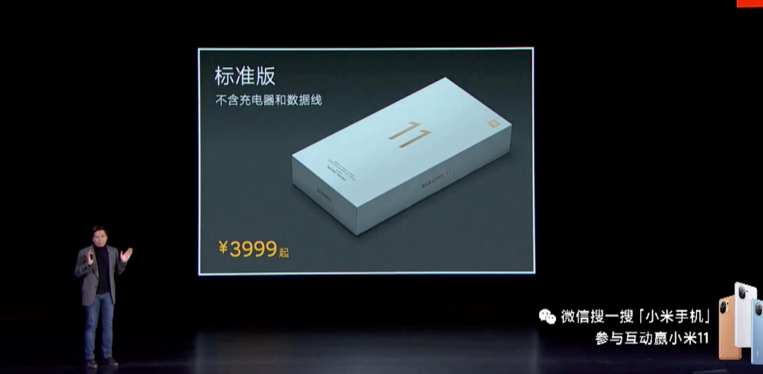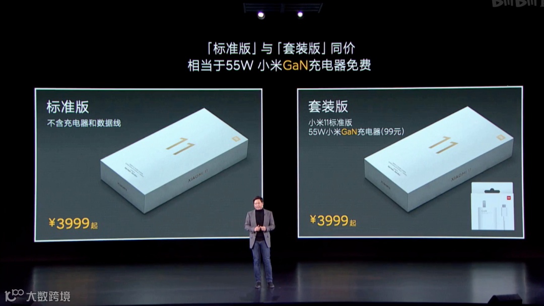 如上图所见,小米11在上架后会提供「标准版」和「套装版」2个版本,售价一致均为3999元起,「标准版」环保不含充电器和数据线,而「套装版」内含一个价值99元的小米55W GaN充电器。让用户自行选择购买。