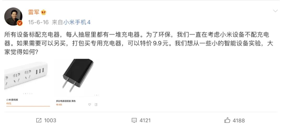 但无论雷军口中的解决方案是哪种形式,估计用户吐槽都少不了,今天就看到有不少吐槽小米“好的不学非跟风苹果取消充电头”,还有网友翻出了当初小米海外账号嘲讽苹果取消充电头的动态,吐槽这不是“打脸”吗?