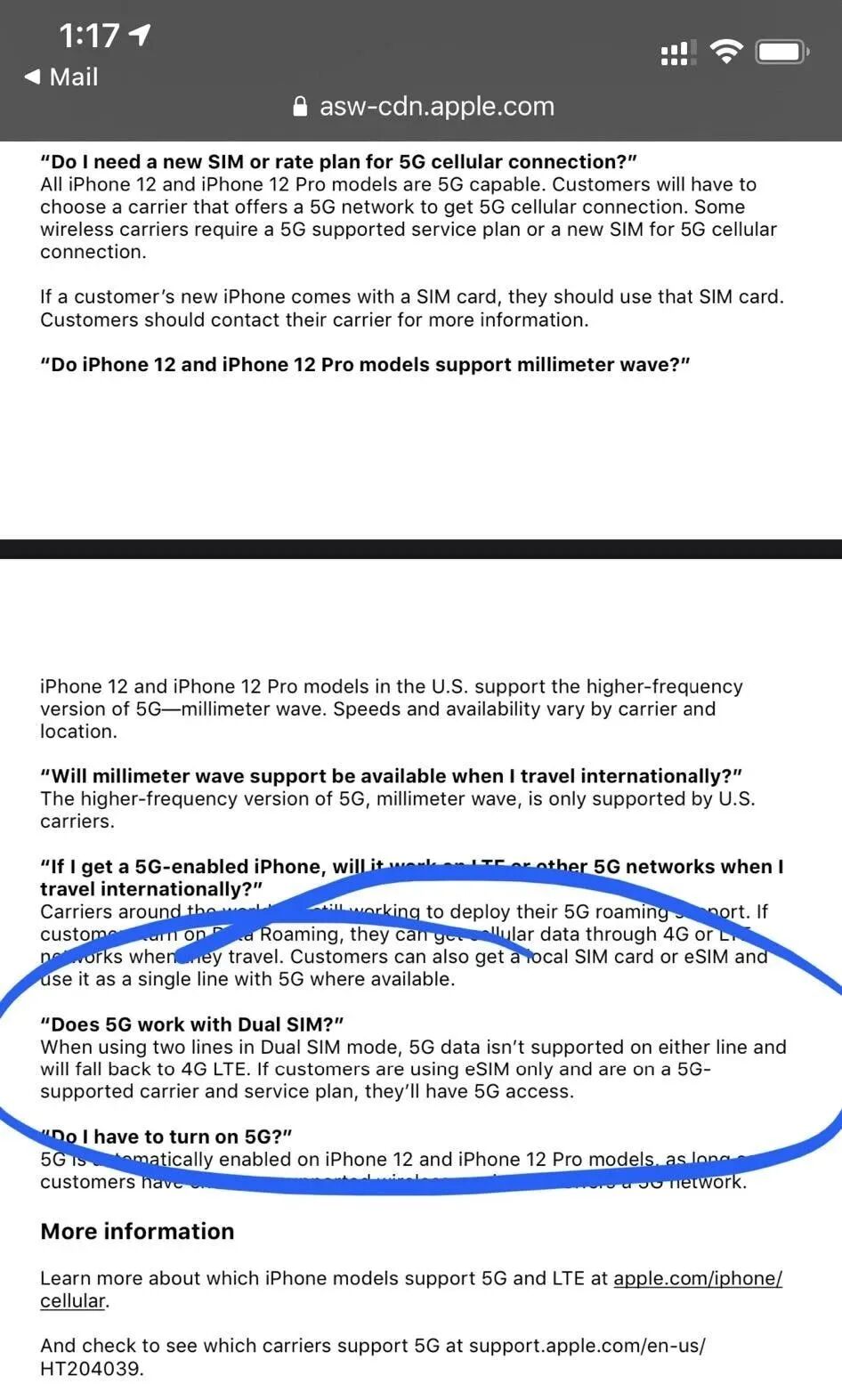 ,但不支持同时使用5G(安卓大部分5G手机也是如此~),猜测应该是因为国外iPhone 12系列双卡多为实体卡+eSIM卡组合,国行是实体双卡的缘故吧~反正国行iPhone12在双卡下支持5G。