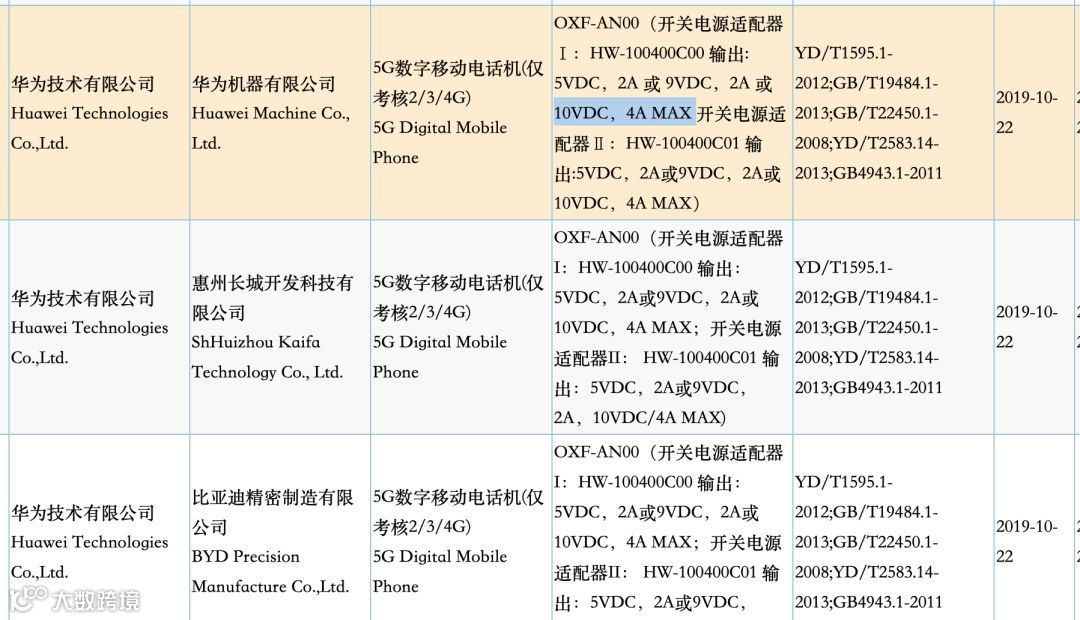 续航方面,据了解,荣耀V30系列型号为“OXF-AN00”,小白在3C认证平台查到其充电器已经获得认证,标配最高功率达10V/4A 40W的充电器。另据之前爆料,其还将内置4200mAh,支持15W无线快充。