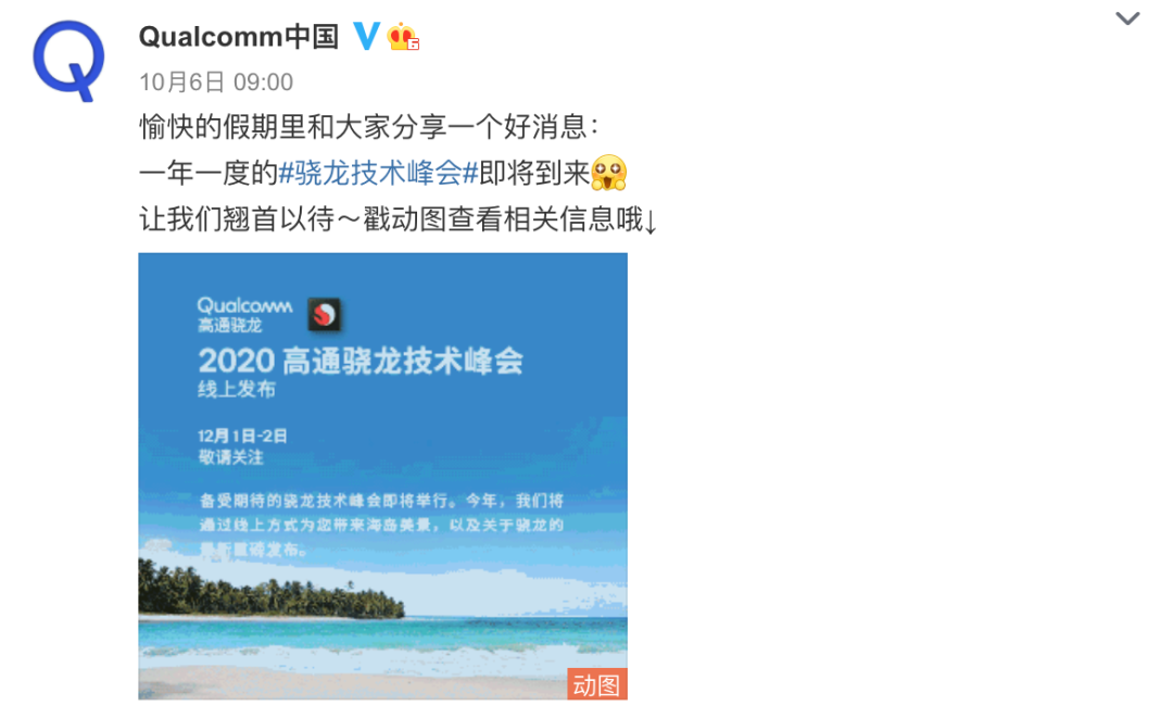 日期,高通宣布将于 12 月 1 日 - 2 日 举办一年一度的骁龙技术峰会,而峰会的主角据了解有 骁龙 875 和 骁龙 775G 等新品,随后有不少厂商和高通官博互动,纷纷暗示自家的新旗舰。