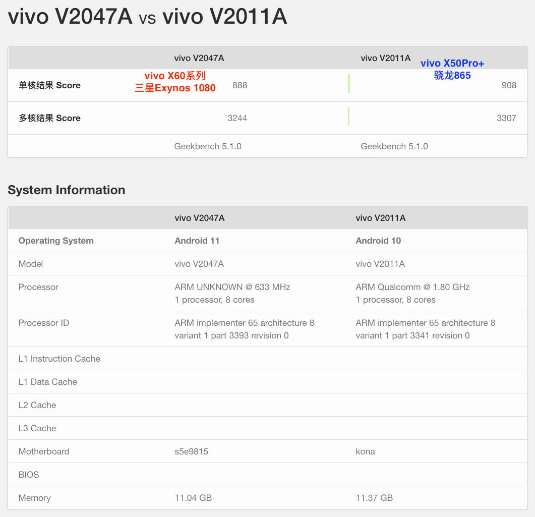 日前,vivo X60系列将全球首发5nm三星Exynos 1080处理器,关于这颗5G SoC虽然早前已经发布各项规格悉数公开,但性能表现如何仍需观望,今天疑似搭载三星Exynos 1080的vivo X60已经现身Geekbench跑分库,来看下跑分表现如何。