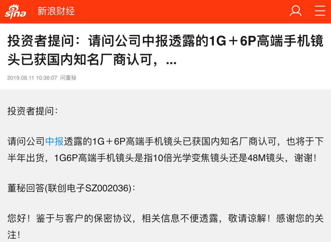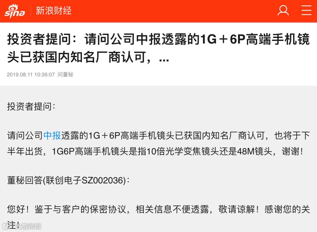另据报道,荣耀这款新机还将搭载1G+6P镜头。1G+6P手机镜头曾于今年8月被联创电子公司中报提及,已获国内知名厂商认可,将于下半年出货,预计也是11月-12月左右上市。