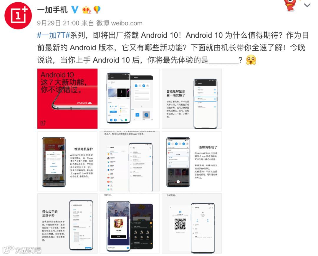 另外,日前在印度发布的一加7T系列国行发布会预计会在10月中旬到来,官方微博也开始了对一加7T系列的预热,表示一加7T系列,即将出厂搭载 Android 10,并公布了Android 10的七大新功能。