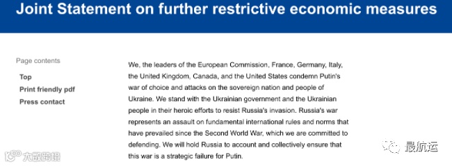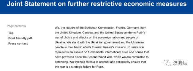 欧洲理事会也在26日晚间发布公告其他制裁措施,将对俄罗斯的行动造成“重大而严重”的后果,涉及金融、能源和运输领域,涵盖军民两用商品、出口管制以及出口融资、签证政策等。