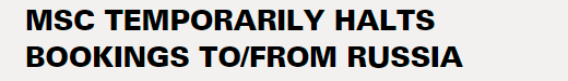 然而,由于荷兰、比利时和德国等国扣留了前往俄罗斯的船只,因此预计会出现重大延误。(据报道,部署在鹿特丹-圣彼得堡支线航线的集装箱船“VAYENGA MAERSK”号自2月26日从圣彼得堡抵达后被拒绝进入鹿特丹港,一直停泊在鹿特丹外锚地)对运往俄罗斯的出口和转运货物的检查与执行程序有关,以遵守不同司法管辖区最近实施的制裁和出口管制。