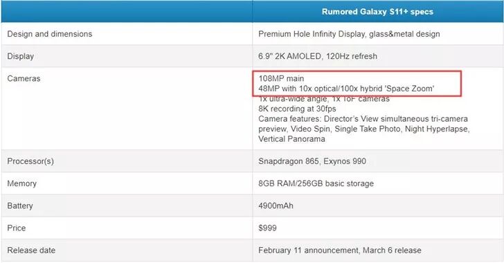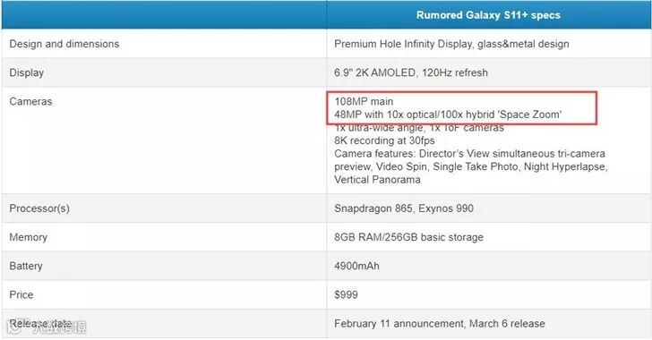 此外,爆料称S11系列还将标配120Hz屏幕刷新率,国行搭载骁龙865,LPDDR5内存,或许会改名为S20系列,以年份命名,将于2020年2月18日在美国旧金山正式发布,3月上市。