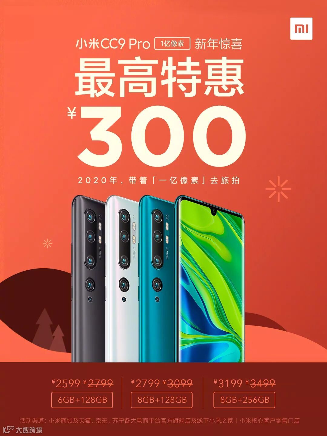 据小米官方宣布,小米CC9 Pro今天限时直降300元,具体来说6+128GB版直降200,由原先的2799降为2599;8+128GB直降300元,由原先的3099元降为2799元;8+256GB直降300元,从原来的3499降为3199。