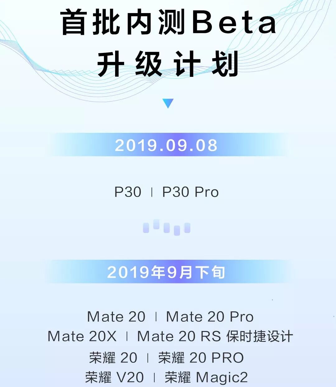 至于Beta升级尝鲜,今天华为P30系列的EMUI 10内测版已经推送,之前内测报名成功的用户已经可以收到,到这个月下旬荣耀20系列和华为Mate 20系列也会陆续开始内测。