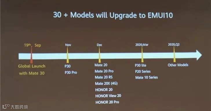 另一边,华为、荣耀手机适配EMUI 10/Android 10.0正式版进度上,官方近日也公布了更详细的适配时间表,华为Mate 30系列9月19日首发,随后11月P30系列,12月Mate20系列和荣耀20系列,明年华为P20系列、Mate10系列等机型。