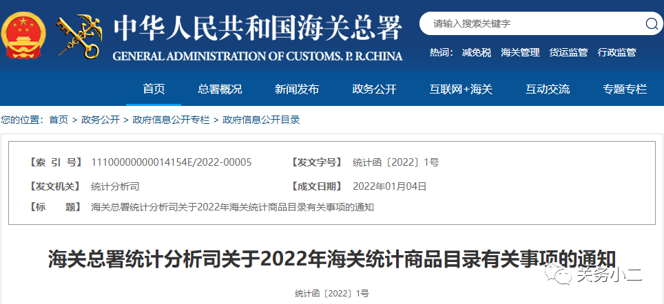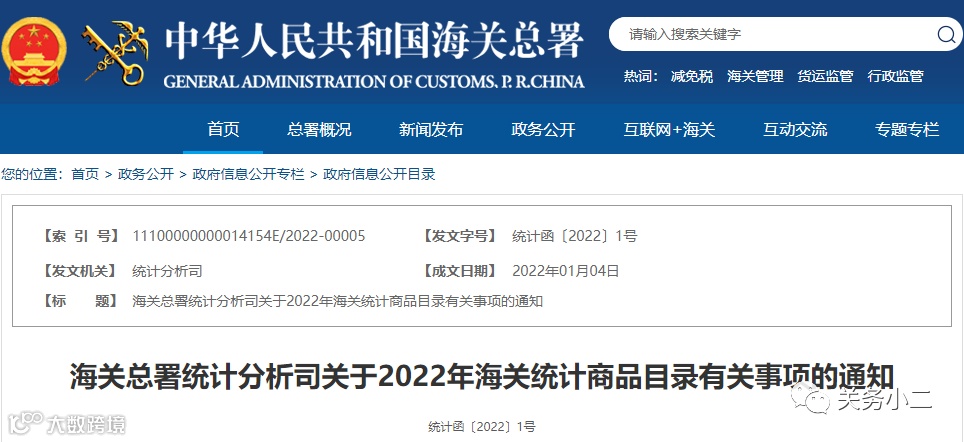 海关总署统计分析司发布2022年海关统计商品目录有关事项的通知,详情如下: