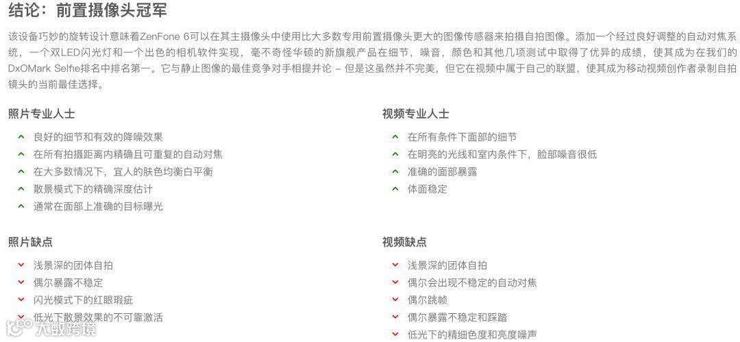 但需要注意的是,参数上,华硕ZenFone 6之所以能在DxOMark前置相机排行中横空出世,皆因为其“胜之不武”,其采用独特的 「翻转式镜头」设计,「前后置通用」,后置相机拿来刷前置相机榜单,不拿个前几也确实说不过去。