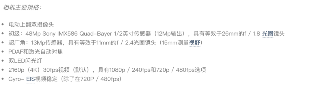 相机参数上,华硕ZenFone 6翻转式双摄,主摄 4800万像素索尼IMX586 1/2英寸传感器,f/1.8镜头,26毫米等效焦距;副摄 1300万像素超广角镜头,f/2.4镜头,11毫米等效焦距。