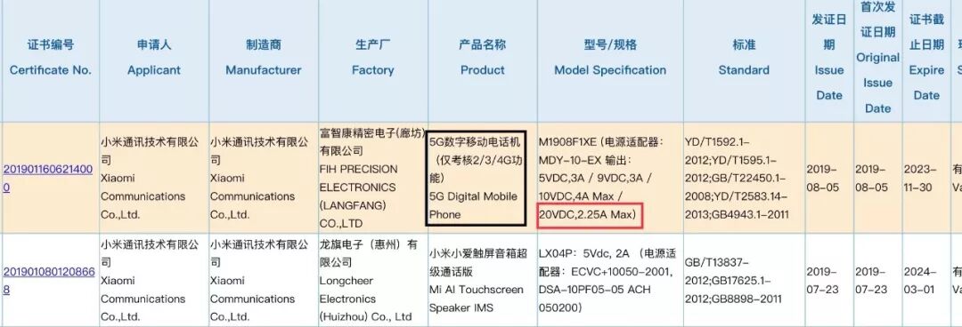 据之前3C认证消息,在8月初,疑似小米MIX4的新机显示将配备功率最高达45W(20V/2.25A)功率快充
