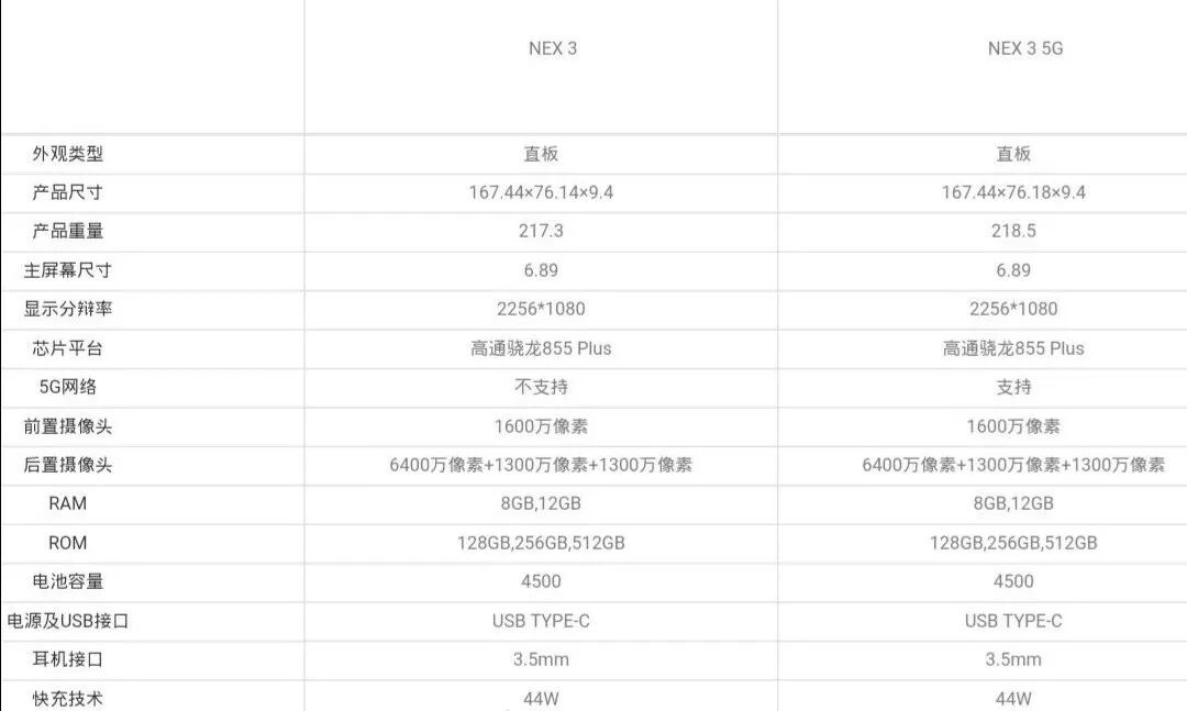 vivo NEX 3配置汇总 图源@数码闲聊站