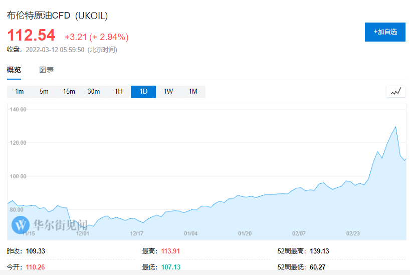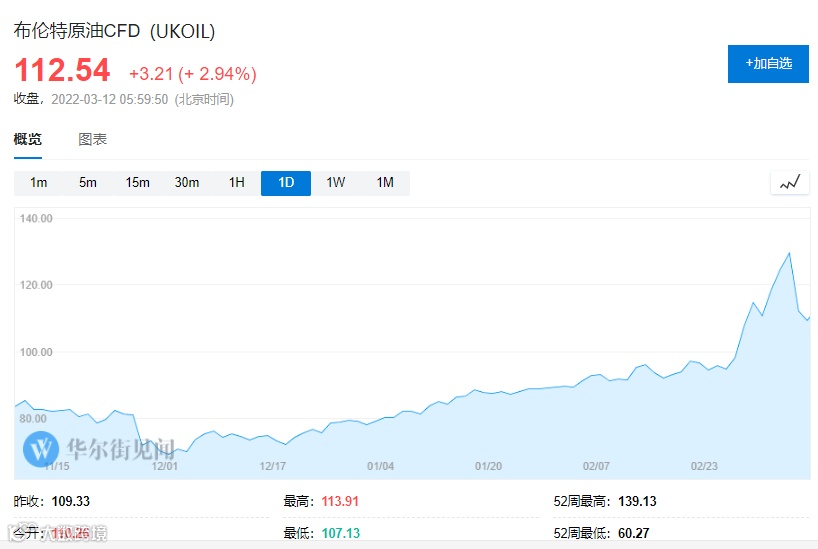 3月8日,美国和英国宣布在2022年底前禁止进口俄罗斯石油,国际油价再度飙升。进入3月份以来,布伦特原油最高上冲至132.72美元/桶,最大涨幅近42%,这是史无前例的。