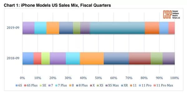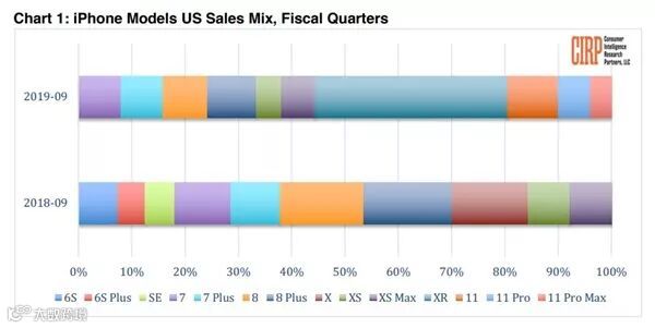 据研究机构CIRP数据显示,9月份在美国市场,iPhone 11的销量大致相当于iPhone 11 Pro与Pro Max的总和,即各占10%,其中小屏的iPhone 11 Pro比Pro Max更受欢迎。