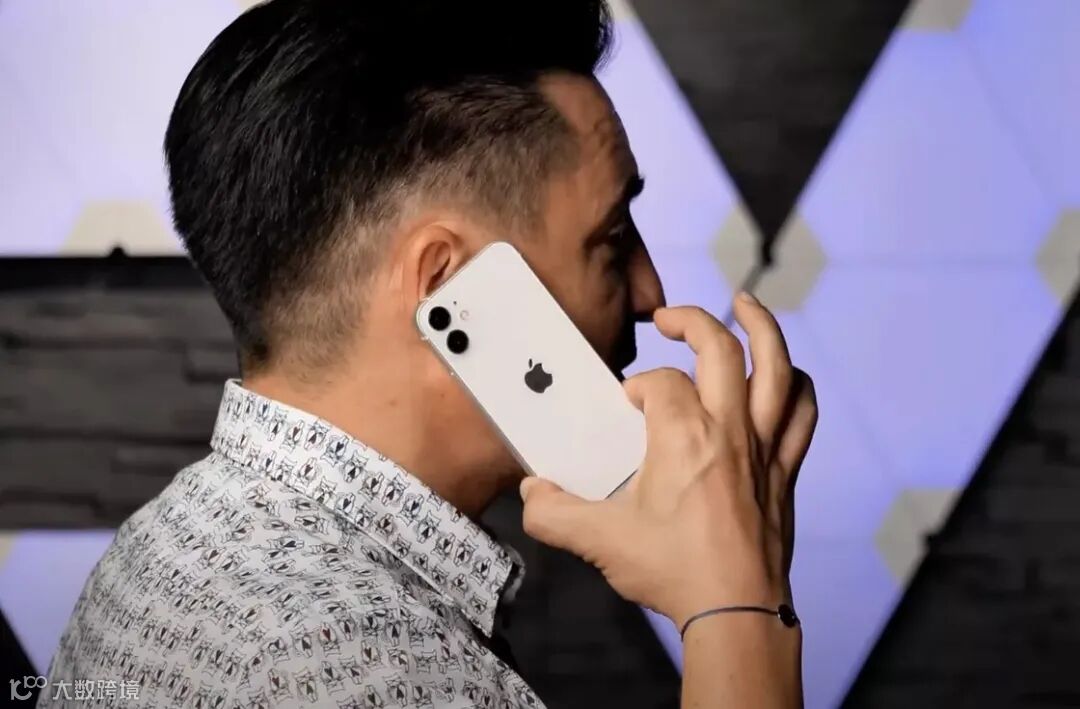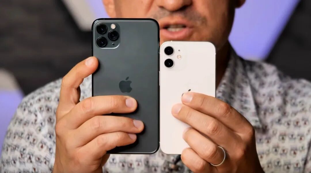 看成年男性手持iPhone 12 mini