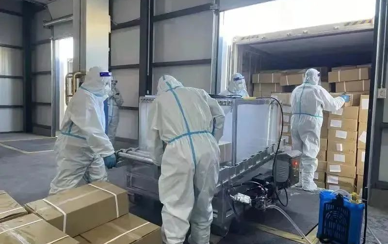 确保货物闭环管控:设立车辆等待区、核酸采样区、货物消毒区、货物暂存区和车辆暂存区,配备专门人员、专用电梯、专用叉车、专用通道和专用库房,定期消毒,避免交叉。建设两座消毒方舱,货物核酸检测和消毒全部在封闭环境下完成等。