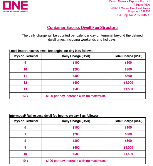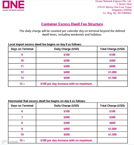对于卡车运输的集装箱,如果在码头的停留时间超过8天(包括8天),将向船公司收取附加费;对于铁路运输的集装箱,超过5天(包括5天),即向船公司收取附加费。