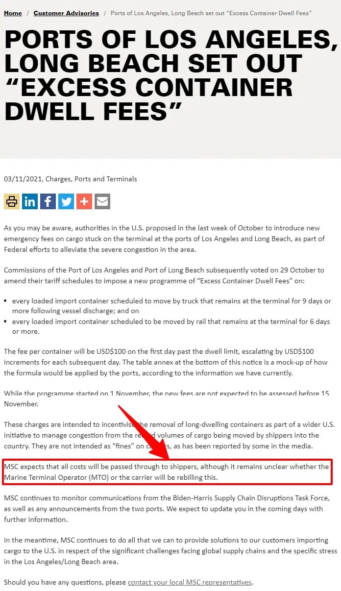 船公司已发公告要“代收代付”,所有费用都将转嫁给托运人。托运人当然也不想交,但货扣在船公司手里,不交罚款无法提货,货不提走,罚金继续上涨,所以托运人和收货人会面临越来越被动的境地,届时也必将一起新一轮纠纷——毕竟,谁也不想交这笔钱。一旦遇上这种糟糕的状况,客户弃货风险激增。