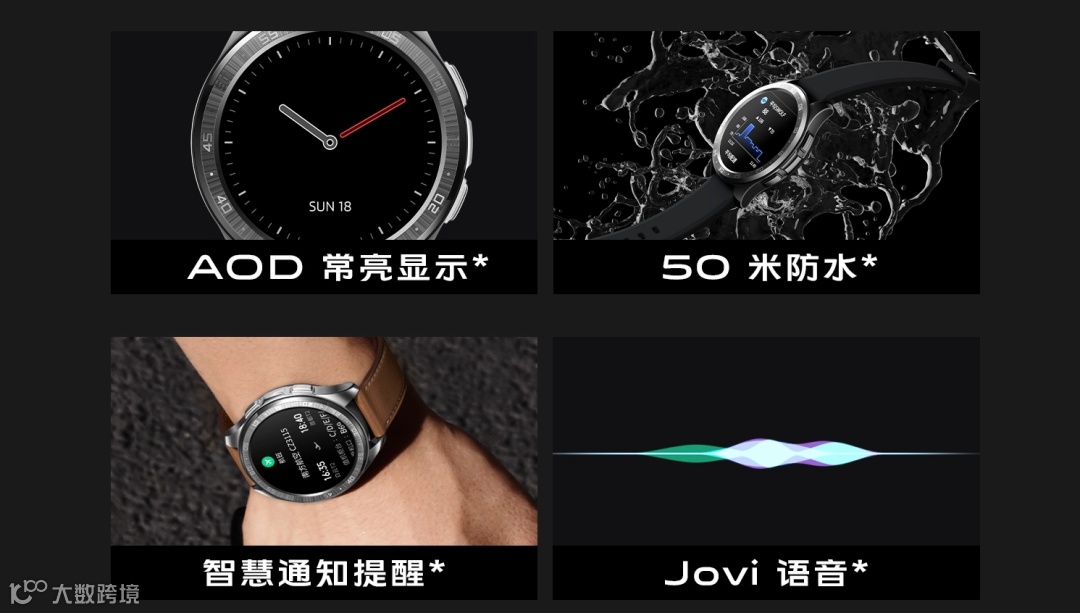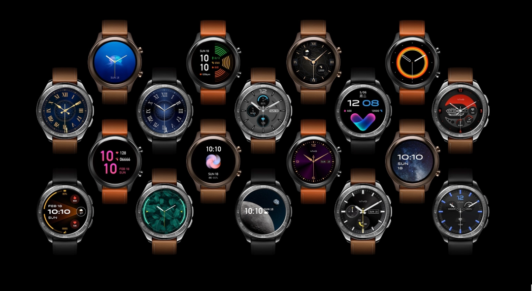 外观上,vivo Watch全系均采用316L精钢表身,陶瓷表盘,42mm和46mm两种规格,都是一块超低耗AMOLED高清显示屏,支持AOD息屏时钟常亮显示,提供多种表盘。