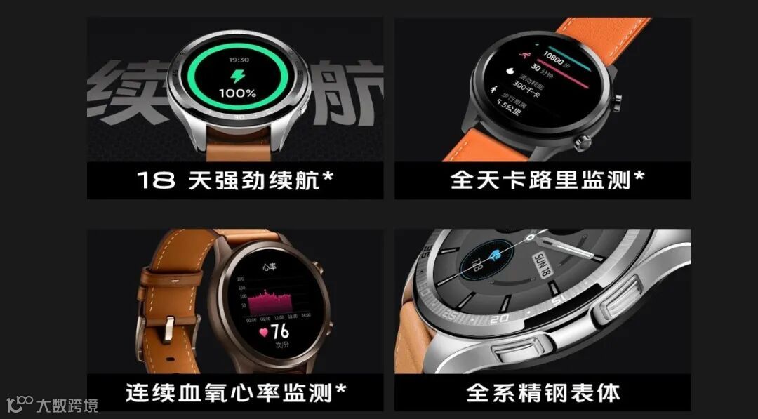 其中42mm版本提供摩卡棕、秘夏橙2个配色,采用1.19英寸390*390分辨率、326PPI的圆形表盘,橙色真皮/棕色真皮2种表带,手表主体三围42*42*9.7mm,不含表带重35.6g,官网显示购买即送黑色氟橡胶表带+10W充电器,226mAh电池,日常使用续航最长9天。