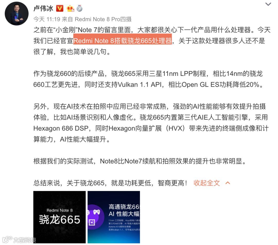 没想到大周末卢伟冰卢总也没歇着,在微博持续预热即将于下周发布的新机Redmi Note 8普通版,有些意外的是,普通版的配置和外观和Pro版大相径庭,来看看普通版差别有哪些~