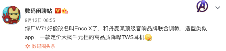 另一边据其爆料,OPPO Enco W71或命名为Enco X,将和丹麦某顶级音响品牌联合调教,也是千元档的降噪TWS耳机,或许会对标华为FreeBuds Pro和AirPods Pro?🤔