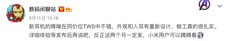 据爆料达人透露,小米Air 2 Pro在同价位TWS中表现不错,外观有重新设计,做工也很扎实,发布时间就是这两个月左右,感兴趣的小伙伴可以观望一下。