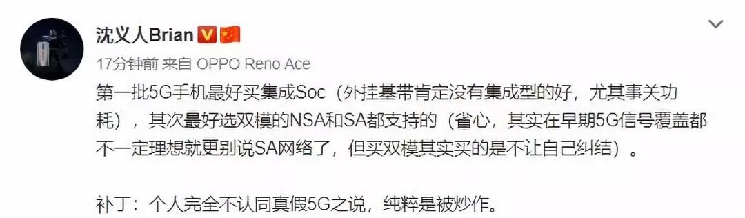 不过略微尴尬的是,日前预热双模5G手机的OPPO副总裁沈义人似乎因为自己的言论莫名给华为打了广告,近日微博也改了昵称,并换掉了OPPO副总裁的认证,清空了微博。现在就坐等高通双模5G系列新机上市了,预计价格会低于华为系列。