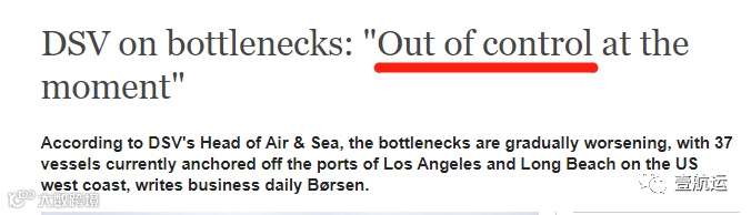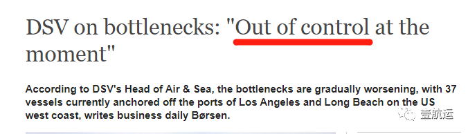 DSV 北美海空业务负责人 Niels Larsen 此前已经就集装箱市场形势向丹麦商业日报 Børsen 坦言:当前市场已经失控!