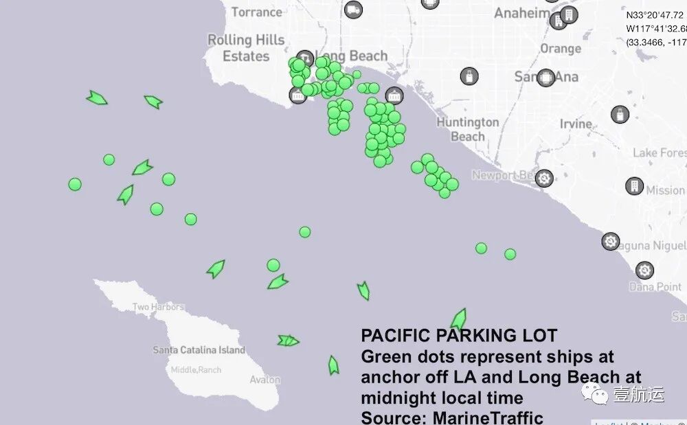 8月18日,总共有30艘货轮在圣佩德罗湾等待,等待靠泊的集装箱船队向南延伸约20公里!
