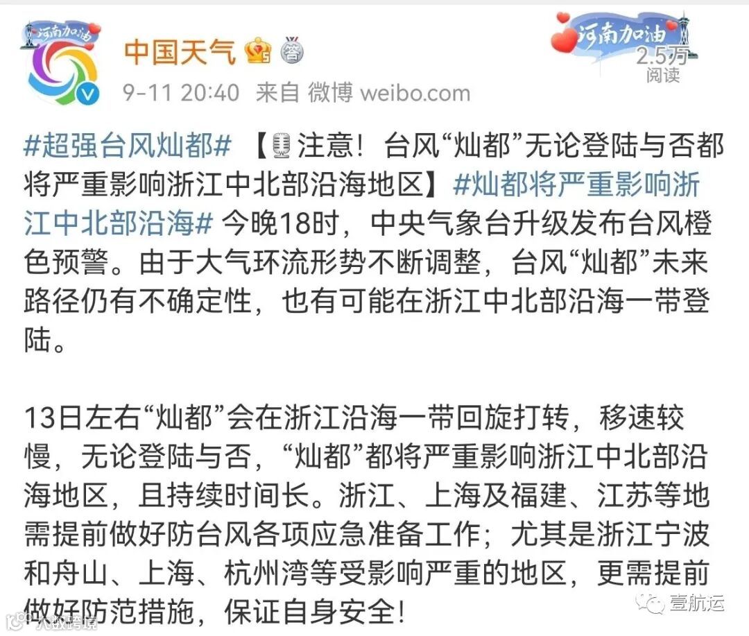 预计本次风力高达16级的超强台风“灿都”,其影响力将不亚于7月份的“烟花”,根据台风最新实时路径,从今天(9月12日)起,上海港和宁波舟山港都将陆续暂停码头相关作业!