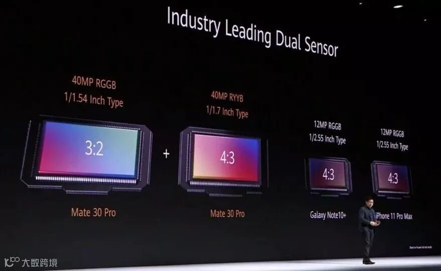 拍照上,华为Mate 30 Pro主打超感光徕卡电影四摄,双IPS图像引擎,双主摄,双4000万,双ois,双超感光传感器。