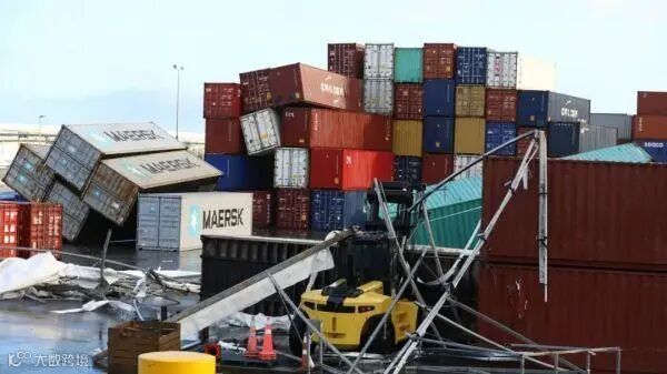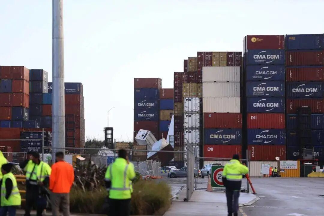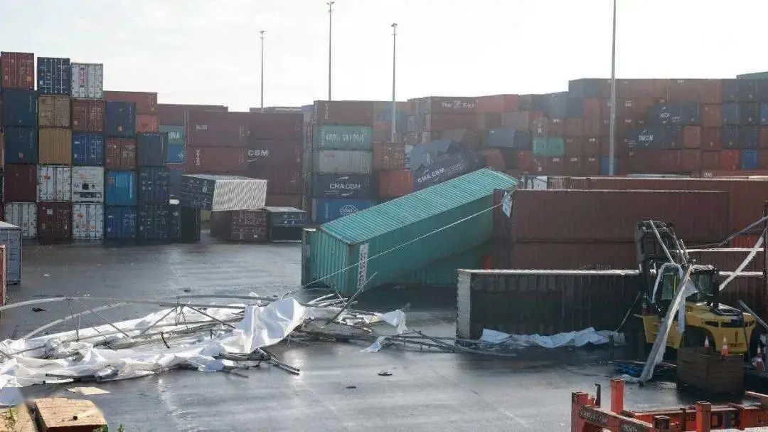 奥克兰港口发言人Matt Ball表示,龙卷风对码头的破坏范围很广,数十个集装箱已经倒塌。一个重达30吨的集装箱被风吹起。附近高速公路上的路标也被吹到了货场。“对这一可怕的反常事件感到非常震惊。”