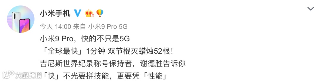 此外,小米官方还表示小米9 Pro快的不只是5G,性能也会更快。据之前消息,小米9 Pro 5G搭载高通骁龙855 Plus处理器➕X50 5G基带,支持5G与4G双卡双待,提供12GB+512GB储存规格(小米今年首次),同时还内置4000mAh大电池,将首发30W无线闪充,有可能是45W有线快充。