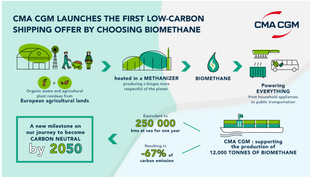 为了减少碳排放,达飞将开始向客户提供使用生物甲烷燃料的选择。